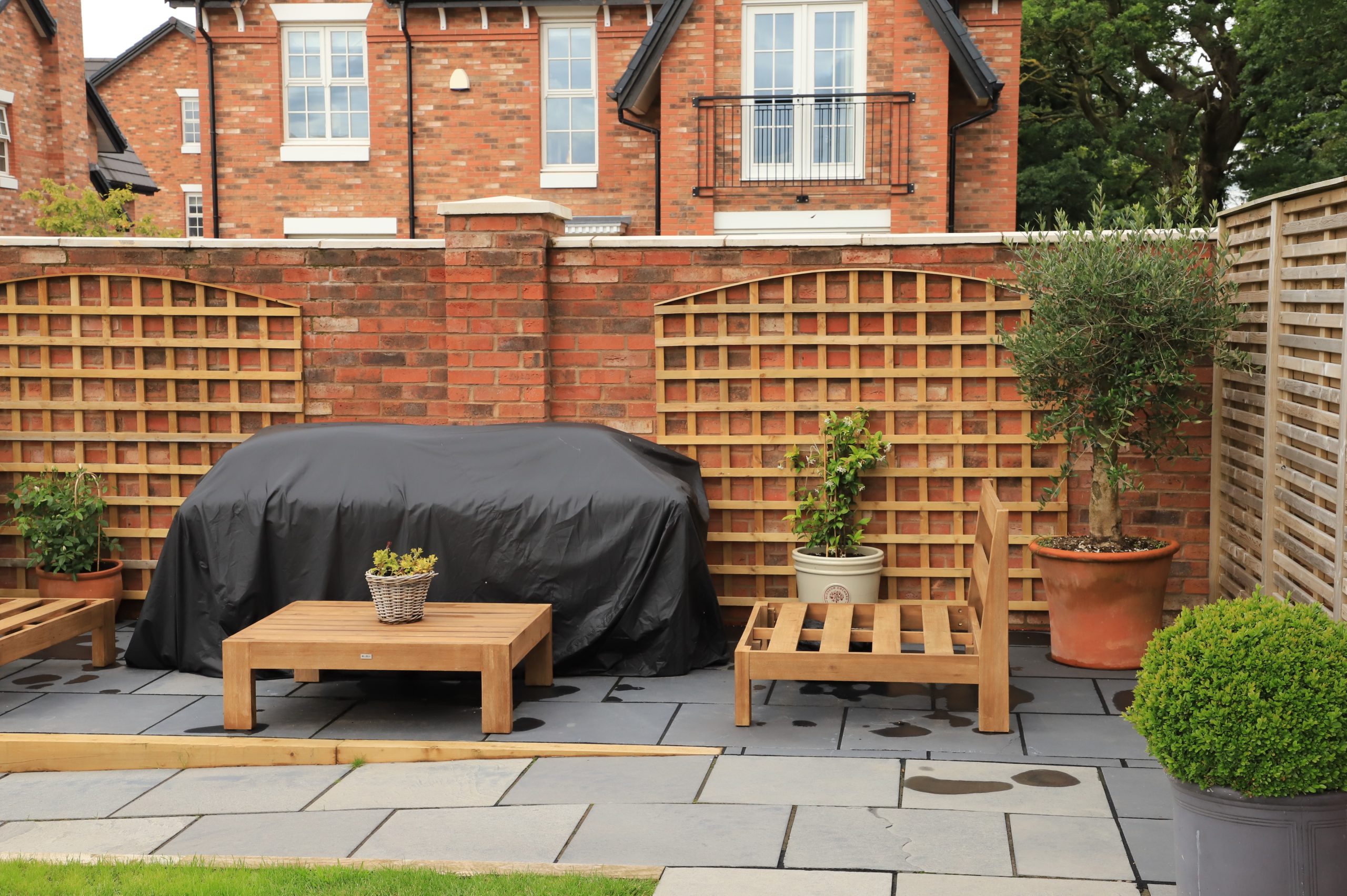 Now that the garden was a blank canvas and the foundations were laid we could now visualize the different areas within the garden and the benefits it will bring. We added on to the path which ran along the side of the house making it into a larger patio area where furniture could be placed. Keeping in theme with the grey porcelain tiles, although these weren’t a perfect match, mixing them worked really well.